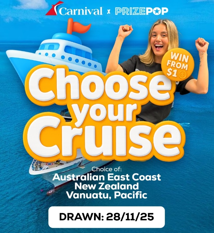 The Choose Your Cruise competition gives one lucky winner and three guests the chance to pick their own dream adventure at sea. The winners will enjoy a 7-day cruise to one of four stunning destinations: New Zealand, the Australian East Coast, the Pacific Islands, or Vanuatu. Whether it’s sailing through New Zealand’s breath-taking fjords, exploring coral reefs off Queensland, or relaxing under Pacific sunsets, the choice is entirely yours. Onboard, winners will experience the full Carnival Cruise Line treatment: World-class dining, spectacular entertainment, and ocean views from sunrise to sunset. From pools and spas to comedy shows and kids’ clubs, Carnival’s ships have everything you need for the ultimate escape! “After the excitement of our Hamilton Island giveaway, we wanted to go even bigger,” says Ethan from PrizePop. “Choose Your Cruise gives Aussies the power to pick their own paradise: relaxation, adventure, or a bit of both!” Entries start from just $1, and the live draw will take place on 28 November 2025, with the winner announced across PrizePop’s social channels. And to keep the good vibes rolling, the first 500 Gold and Platinum Members will also receive a 12-month Netflix subscription, the perfect pre-cruise companion! Full details on the giveaway and Netflix promotion are available at www.prizepop.com.au. About PrizePop: PrizePop is a modern Australian giveaway platform offering lifestyle-driven competitions with unbeatable transparency and excitement. With over $500,000 in prizes already won, PrizePop is quickly becoming one of Australia’s most trusted destinations for premium giveaways. ENTER_HERE: https://www.aussiecomps.com/ps/16803 (Views: 172) Please Note: If the blue entry link is greyed out (faded) you've previously visited the comp on your current browser. Good Luck! |