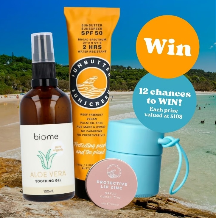 WIN 1 of 12 summer-ready packs (valued at $108 each) filled with sun protection heroes from SunButter & Solmates, and aftersun care from Biome.